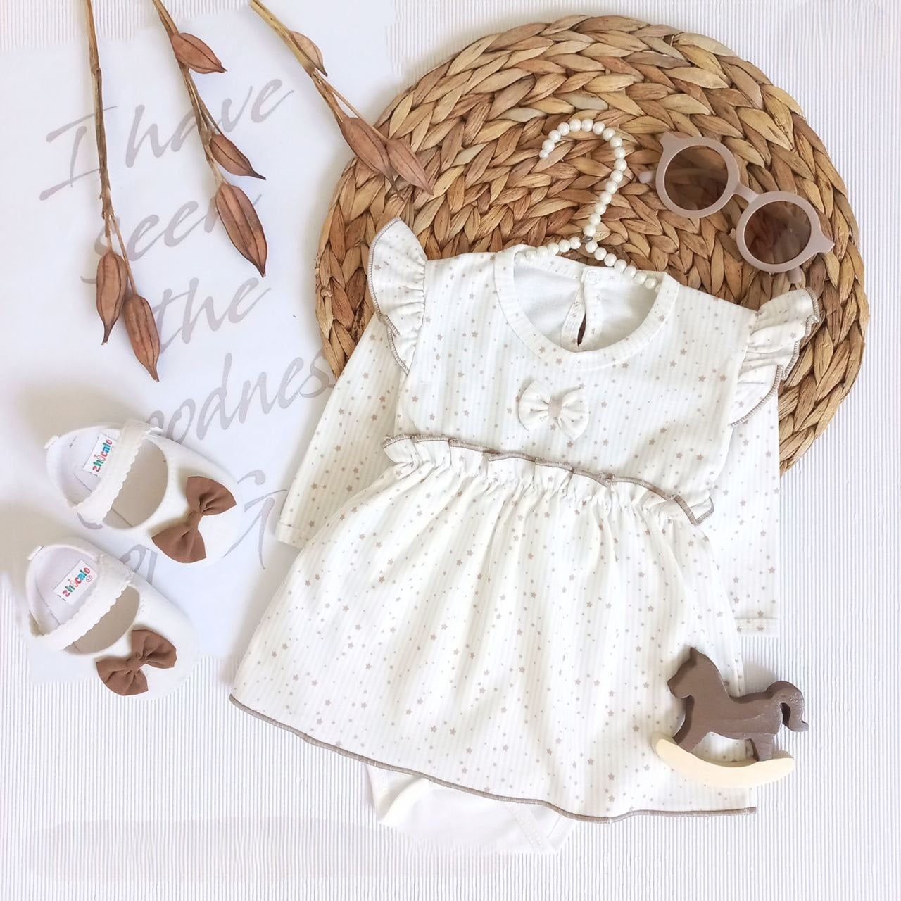بادی نوزادی دامن دار آستین بلند مدل ستاره کد 885