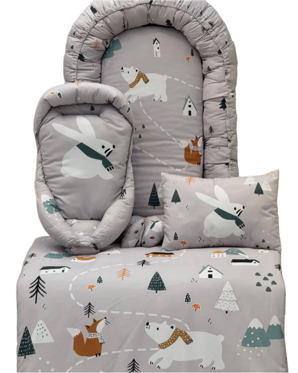 ست 5 تکه شامل: تشک لبه دار همراه با تشک داخل، لحاف، بالشت، آغوش سوییسی