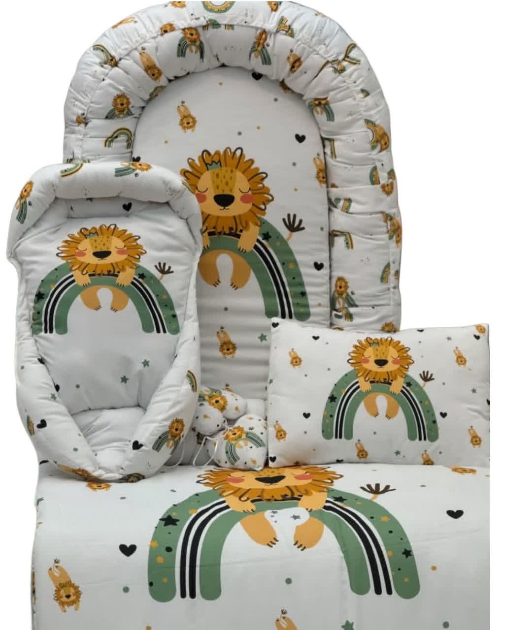 ست 5 تکه شامل: تشک لبه دار همراه با تشک داخل، لحاف، بالشت، آغوش سوییسی
